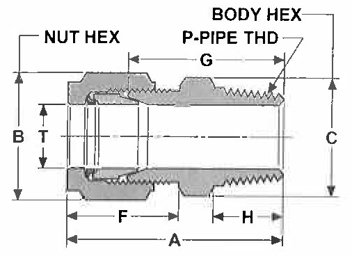 The CMT body does not contain a sizing angle or butt seal. As a result, the thermocouple can be extended beyond the fitting’s NPT thread end.